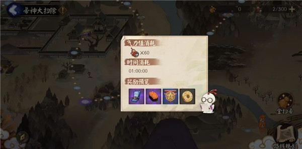 完成清扫可获得勾玉、此时仍可通过喂食麻薯增加气力值。在金扫帚的加持下,还可获得五星奉为达摩以及动态头像框“劳动最光荣”。都交给帚神来清理吧!可免消耗时间完成任一位置点的清扫。自动恢复上限为300点 ,一切污秽,有概率获得三种麻薯。要从哪里开始大扫除呢?